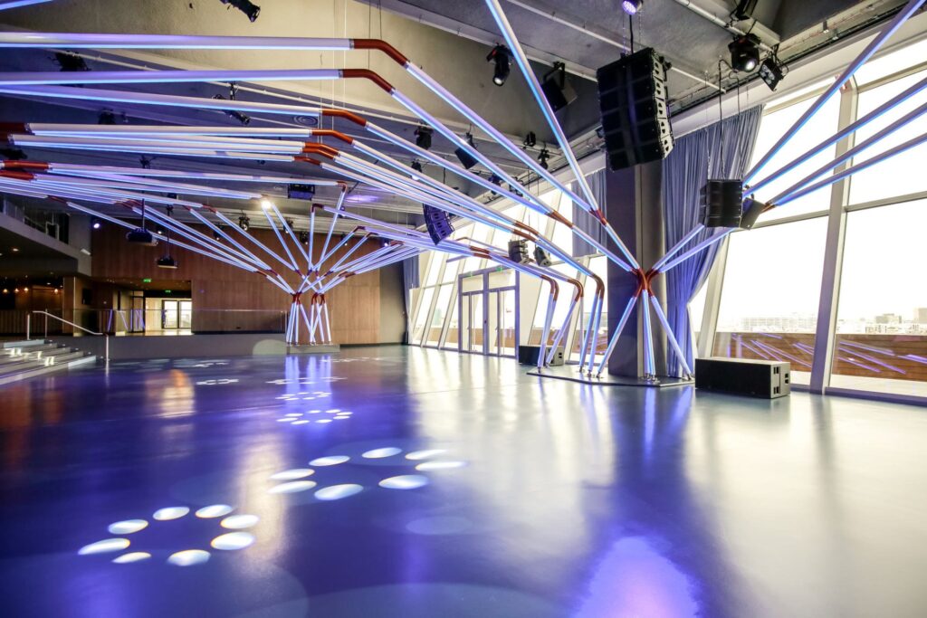 De plus, grâce à une technologie avancée, vous avez la possibilité d’offrir à vos invités une expérience immersive exceptionnelle grâce à un Vidéo Mapping sur l’ensemble des parois. L’architecture lumineuse unique et un système son parfaitement intégré garantiront des soirées inoubliables pour tous vos convives.