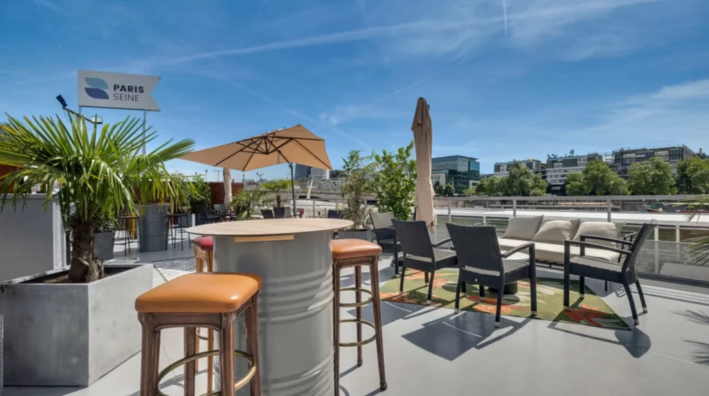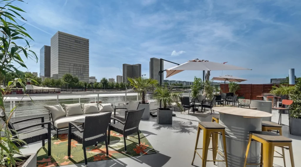 Situé sur les bords de Seine dans le quartier de Bercy, il offre une vue magnifique sur la Bibliothèque François Mitterrand et son quartier d’affaires.